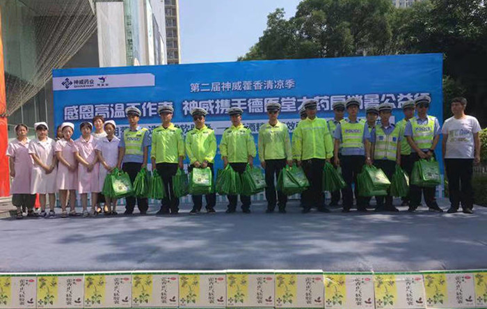 本次活动,k8凯发生物药业和德医堂大药房的相关负责人向公交司机、环卫工人、和交警同志赠送了清凉大礼包。大礼包里包括藿香正气软胶囊、风油精、花露水、一次性口罩等等。